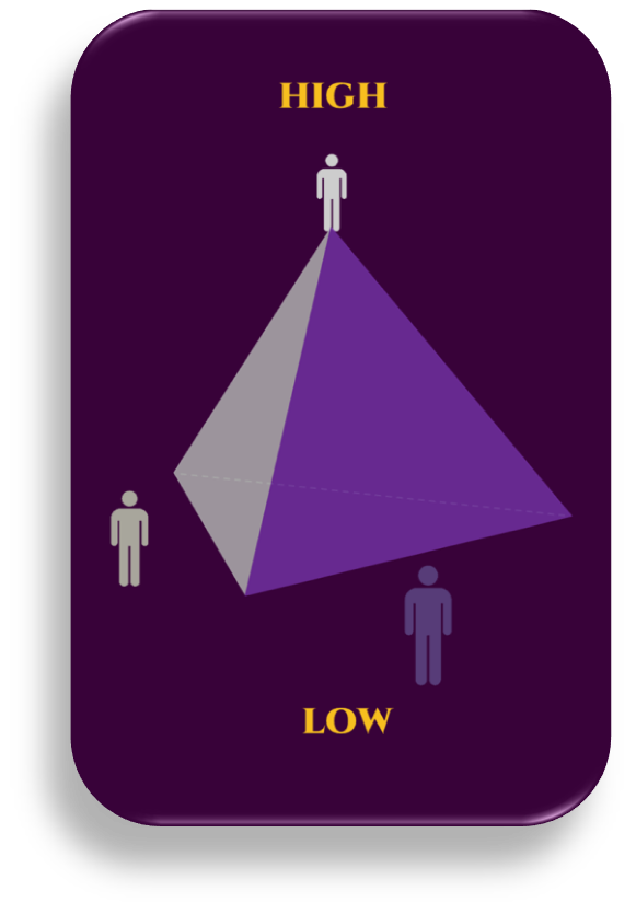 Look at the image. The “high man” stands at the top. He sees all sides of the tetrahedron at once. The “low man” stands at the base. His vision is limited.